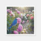 A bright bluebird perched on a peony in a lush garden filled with colorful flowers, as sunlight streamed through, enhancing the vibrant colors
