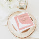Os guardanapos de chá de panela de casamento para a futura noiva na moda, um design de vestido de noiva, um texto personalizado que pode ser personalizado, e um esquema de cores de branco, pincel / coral rosa e ouro antigo.