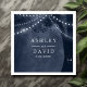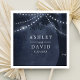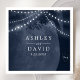 Adicione um toque de elegância rústica ao seu casamento com as luzes azuis da nossa marinha. Este design encantador apresenta uma árvore rústica adornada com luzes de cordas e iniciais esculpidas, criando uma atmosfera acolhedora e convidativa. Perfeito para casamentos com temas externos e florestais, esses guardanapos únicos vão melhorar suas mesas e impressionar seus convidados.