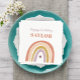 Bonito Boho Rainbow Peach Blush Birthday Napkins apresenta uma adorável dupla de arco-íris em tons de rosa, pincel, mostarda, aqua e marinho, juntamente com a caligrafia moderna.