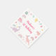 Esses bonitos guardanapos de aniversário apresentam dinossauros desenhados pela mão, arco-íris e folhas em cores pastéis.