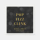 Guardanapo elegante com as palavras "Pop Fizz Clink" em folha de ouro falso sobre um fundo de luzes bokeh cinza escuro. Perfeito para festas de noivado, casamentos, aniversários ou vários outros eventos.