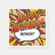 Personalize o nome para criar um guardanapo de aniversário único. Um divertido e moderno presente de aniversário inspirado na arte pop retrô de histórias em quadrinhos que dá um toque especial em qualquer celebração de aniversário de super-herói. Criado por Thisisnotme©