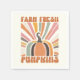 Esta vibrante e retrorinspirada design de outono destaca a frase "Fazenda de Bombas Frescas" em tipografia ousada e brincalhona que imediatamente chama a atenção. No centro da design está uma abóbora grande e estilizada, representada em tons quentes de laranja, marrom e creme no outono. A abóbora é emoldurada por uma explosão dinâmica de raios coloridos que se estendem para fora, apresentando uma paleta de laranjas mudas, pinças, amarelos e verdes que adiciona uma sensação nostálgica e de safra ao design. A combinação do padrão de explosão solar com a fonte corajosa e curvada dá ao trabalho de arte uma vibração divertida e enérgica, perfeita para capturar o espírito festivo de outono.