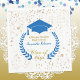 Resguardas de papel para o segundo grau ou festa de formandos especial com texto personalizado. Apresenta a imagem de um boné formando azul e uma coroa de louros acentuadas com um faux gold confetti. Grupos de cores vermelho, preto e outros também disponíveis neste mesmo design