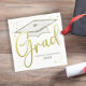 Este design apresenta um partido simples, moderno, de formando formando, com ouro de conselho de morteiro de boné de formatura, para segundo grau ou mais velho universitário, com uma classe personalizada de nomes, uma letra de escrita de na moda de tendência, um guardanapo de cocktail de papel do partido formando, material de festa de graduação formando, um simples partido minimalista de confetti de ouro, um design moderno contemporâneo simplista, um jantar de graduação de formando guardanapo