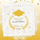Resguardas de papel para o segundo grau ou festa de formandos especial com texto personalizado. Apresenta a imagem de um boné de formando dourado e uma coroa de louros realçada com um confete dourado falso. Chapa de papel correspondente, também preto, azul e outros grupos de cores disponíveis neste mesmo design