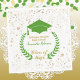 Resguardas de papel para o segundo grau ou festa de formandos especial com texto personalizado. Apresenta a imagem de um boné verde de formando e uma coroa de louros acentuadas com faux gold confetti. Chapa de papel correspondente, também preta, azul e outros grupos de cores também disponíveis neste mesmo design