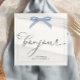 Apresentando tons azuis suaves, arcos azuis e um roteiro gracioso, este design emparelha-se perfeitamente com qualquer celebração parisiense ou coquete.