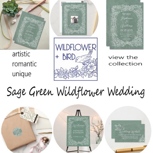 Sage Green Wildflower Bird Border Woodland WeddingCriado por Tuzi Williams