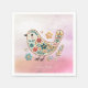 Guardanapo De Papel Bordado Floral de Pequeno Pássaro - Nápoles Rosa