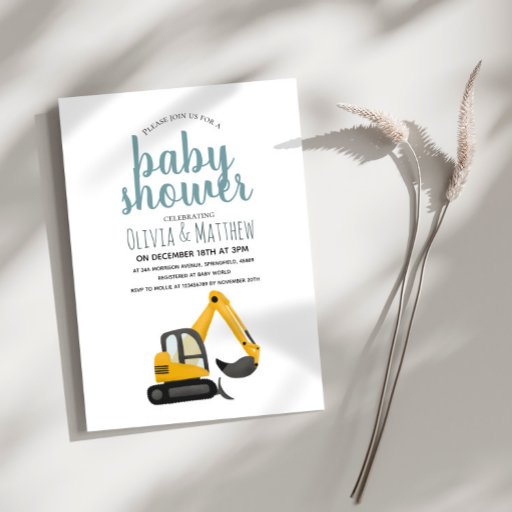 Este design de guardanapo de chá de fraldas de garotos bonitos e modernos apresenta um escavador amarelo (escavador) e um lugar para você adicionar nome(s). Perfeito para qualquer chá de fraldas de rapazes, perfeito para um chá de casais.