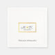 Suas próprias iniciais e um pequeno coração de amor com uma falsa borda de ouro, em um belo guardanapo de papel padrão... com texto personalizado 'obrigado você por celebrar conosco'
