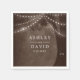 Elevem sua recepção de casamento rústica com esses charmosos guardanapos personalizados. A matiz marrom quente complementa a lindamente ilustrada árvore adornada com luzes de cordas brilhantes e suas iniciais únicas gravadas. Estes guardanapos adicionam um toque de elegância e elegância à sua mesa, criando uma atmosfera quente e convidativa para os seus convidados.