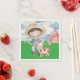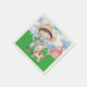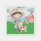 Serviette mit einem Jungen mit seinem kleinen Kalb auf einer Wiese mit einer roten Scheune im Hintergrund. Passend zum Beispiel zum Thema Bauernhof.