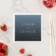 This wedding napkin design features a minimalist layout with a gradient blue background, transitioning from light to dark. The clean, sans-serif typography highlights the names "Lauren" and "Charlie," connected by a simple "and," creating an elegant focal point. The modern aesthetic is enhanced by ample negative space and a serene color palette, evoking a calm and sophisticated mood perfect for formal occasions. Ideal for weddings, this design combines simplicity and clarity, making it versatile for various celebratory settings.