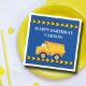 Legal e costume guardanapo de papel festa de aniversário de caminhão para celebrar uma criança que ama veículos de construção amarelos. Festa divertida de veículos decora em amarelo e azul para um menino que ama carros e caminhões. Personalize com o nome do seu filho sob a fita de precaução preto e amarelo.