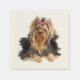 Yorkshire Terrier classe de espetáculos com arco vermelho em fundo branco