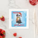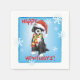 Celebrar a temporada de festas com um filhote de cachorro-d-d-água em português, vestindo um chapéu de Papai Noel e cachecol em meio a uma onda de flocos de neve. Feliz Howlidays!