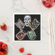 Todos os 5 personagens clássicos do Dia das Bruxas em um guardanapo de Halloween em uma opção escura. Você será a bruxa, o diabo, o pirata, o gato, ou o crânio na sua festa de Halloween?