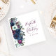 Estes elegantes guardanapos de casamento modernos apresentam um buquê floral azul de ameixa e marinho na margem esquerda. Personalize facilmente o texto de ameixa em um fundo branco, com os nomes da noiva e do noivo em caligrafia manual sobre uma grande e pálida amperse roxa.