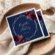 Estes elegantes guardanapos de casamento modernos apresentam um quadro geométrico prateado decorado com burgundy e flores prateadas num fundo azul marinho. Adicione os nomes do casal no guião da letra da cinza prateada sobre um grande e grande e a data do casamento abaixo.