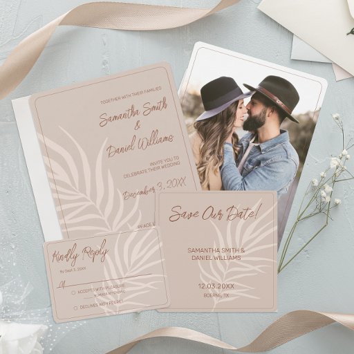 Eleve a decoração da sua mesa de casamento com estas guardanapos personalizadas boho. Concebidas com um fundo terracota suave, ilustração minimalista de folhas de palmeira e iniciais em letra cursiva elegante, elas adicionam um toque chique e coeso à decoração da sua recepção. Personalize com as suas iniciais e data de casamento para um detalhe que combina perfeitamente com casamentos boêmios, rústicos ou minimalistas modernos. Perfeitas para horas de coquetel, jantares e celebrações de noiva.