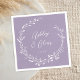 Este elegante guardanapo de papel de casamento apresenta um belo fundo roxo de lavanda com uma coroa de flores silvestres desenhada à mão e uma tipografia elegante em branco. É uma design perfeita para um casamento rústico, mas elegante, e coordena-se com a nossa coleção rustica de flores selvagens... Veja a coleção para mais itens!