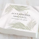 Este design apresenta um elegante guardanapo minimalista simples de casamento, com um clássico modelo clássico tradicional, uma trendy na moda palm tropical, noiva formal e noiva simples, uma escrita de caligrafia e tipografia, excelente para destino ilha de praia botânica, um decoro de recepção de casamento, um guardanapo de coquetel de papel personalizado, um coquetel personalizado, com ampersand de caligrafia