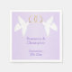 Os guardanapos de casamentos fazem design. Personalize este guardanapo de casamento de cor lilás com seus detalhes de casamento. Se precisar de ajuda para personalizar, entre em contato conosco através do link desta página. Doves design lilac - guardanapo de casamento personalizado colorido