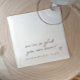 Love Note Napkins: Estes guardanapos românticos apresentam uma mensagem de estilo de nota de amor manuscrita que lê, "Estamos tão felizes que você está aqui", personalizada com os nomes dos casais e a data do casamento. Simples mas moderno, eles adicionam um toque sincero e elegante à sua celebração de casamento, hóspedes de fazer se sentem especiais enquanto aprimoram a decoração com detalhes pessoais e na moda. Perfeito para casais que buscam um elemento romântico significativo.