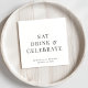 Guardanapos modernos para sua recepção de casamento, janto de ensaio, festas de noivado, chás de casais e outros eventos de casamento com "Coma Bebida & Celebrar", seus primeiros nomes e sua data de casamento em tipografia elegante da serifa.