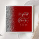 A borda esquerda desses elegantes guardanapos de casamento modernos apresenta um design de cintilação de prata. O texto personalizável combina a escrita manual de cinzas prateadas e as fontes de impressão em uma grande e em um fundo vermelho crítico.