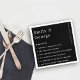 Adicione um toque pessoal à sua recepção de casamento com estes guardanapos de casamento clássicos e modernos. O fundo preto clássico define o cenário perfeito para a elegante tipografia branca e fatos divertidos sobre a noiva e o noivo. Seus hóspedes vão adorar aprender sobre suas coisas favoritas, como vocês se conheceram, e outras coisas interessantes sobre seu relacionamento. O design é simples e personalizável, permitindo que você escolha a cor perfeita para corresponder ao seu tema de casamento. Estes guardanapos não só servirão um propósito prático, como também irão acrescentar um toque único e encantador à vossa recepção. Torne seu dia especial ainda mais memorável com esses guardanapos de casamento divertidos e personalizáveis.