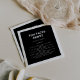 Esta trivialidade negra formal minimalista, fatos divertidos, guardanapos de casamento são perfeitos para um casamento rústico. O design apresenta uma bela fonte em um fundo preto para embelezar seu evento.