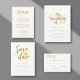Este elegante guardanapo branco e ouro é perfeito para um casamento moderno. Sua simples design apresenta uma elegante caligrafia dourada dos nomes da noiva e do noivo, a data do casamento e fatos divertidos em um fundo branco limpo.