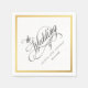 Um guardanapo de casamento maravilhosamente elegante, com destaque de texto de escrita de caligrafia com uma grande borda dourada ao redor do seu texto. O estilo simples e saboroso funciona bem para casamentos em todas as estações.