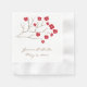 Guardanapos de papel artístico para sobremesas de casamento com um design original do Mango Moon Studio de um galho com flores de cereja em vermelho. Adicione os nomes dos casais e a data do casamento.