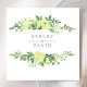 Casamento de Folhagem do Jardim Floral de Watercolor Greenery. Bonitos guardanapos botânicos elegantes com folhas de aquarela verde e flores. Este design de casamento moderno personalizado pode ser facilmente personalizado com seus detalhes personalizados de casamento.