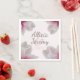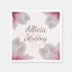 Magnólia rosa do sul floresce guardanapos de papel de casamento com noiva e nomes de noivo e data de casamento.
