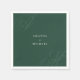 Um simples design minimalista moderno com uma aresta elegante, este design de guardanapo de casamento único apresenta lindos monogramas de escrita caligráfica da noiva e do noivo em cantos alternativos. Os nomes da noiva e do noivo estão centrados com um olhar clássico limpo num fundo verde esmeralda com texto de marfim. Substitua o texto do exemplo por suas informações. Você pode mover suas iniciais levemente para a esquerda ou para a direita, para cima ou para baixo para acomodar sua melhor exibição neste formato de design. Os monogramas parecem melhores quando correm ligeiramente para fora das bordas. Ao personalizar o design no modelo de texto, você pode abrir o editor de cheio selecionando "editar usando a ferramenta design" na parte inferior do modelo de texto.