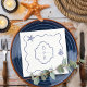 Temas costeiros, guardanapos de casamento com estrelas desenhadas à mão e rabiscos com carapaça do mar junto com uma crista de casal que pode ser personalizada com cada uma das suas iniciais. As cores do texto e da ilustração estão em azul-marinho náutico e o estilo casual e divertido é perfeito para a praia mais informal, a recepção tropical e à beira-mar e a celebração do chá.