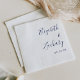 Estes guardanapos de casamento simples e modernos apresentam o texto azul marinho alinhado à margem certa num fundo branco. Adicione os nomes da noiva e do noivo na caligrafia na moda.