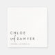 Adicione um toque moderno e na moda às suas comemorações com estes guardanapos de papel de casamento com um roteiro manuscrito minimalista e uma tipografia limpa. Projetados com simplicidade em mente, complementam uma ampla variedade de temas, de contemporâneos a rústicos ou elegantes. Perfeito para hora de coquetel, mesas de sobremesa, ou jantas sentadas, esses guardanapos trazem coesão para os detalhes do seu evento. Você pode atualizar o texto com seus nomes, data do casamento ou uma frase curta. Eles são um pequeno detalhe que ajuda a juntar tudo e faz seus convidados se sentirem bem-vindos.