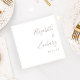 Estes guardanapos de casamento simples e modernos apresentam texto esticado alinhado à margem certa num fundo branco. Adicione os nomes dos casais na caligrafia de caligrafia na moda.