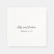 Os guardanapos de casamento clássicos com design simples e chic com seus nomes e data de casamento em um roteiro elegante de caligrafia.