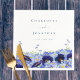 Lindos e elegantes guardanapos de casamento personalizados com primavera de verão. Arte original exclusiva da artista Catherine Sweetman em tons azuis, marinho azul, roxo e verde. Florestas-prados, papoilas, cosmos, esqueçam-me que as notas e as folhagens delicadas fazem deste tema botânico de véu ideal para um casamento floral de primavera ou verão. Modelos fáceis de usar permitem que você adicione o nome da noiva e noiva e a data do casamento no roteiro de tipografia moderna da na moda. Material de casamento igual disponível na suíte de casamento azul de flor silvestre moderna.