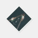 Um guardanapo de coquetel de casamento romântico com belos elementos botânicos vintage sobre uma pirâmide estrutural de ouro rosa em um fundo texturizado com monograma empilhado do casal e data de casamento.