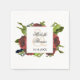 Uma bela escolha para casamentos em qualquer estação, este design de guardanapo apresenta um buquê floral de rosas vermelhas. Edite o simples design com o nome da noiva e do noivo e a data do casamento. Elementos florais usados neste design de createtecut. Veja aqui o convite de casamento correspondente: