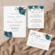 Tema floral russo guardanapo de papel de noiva com ilustração aquática de cor azul-marinho com verde.